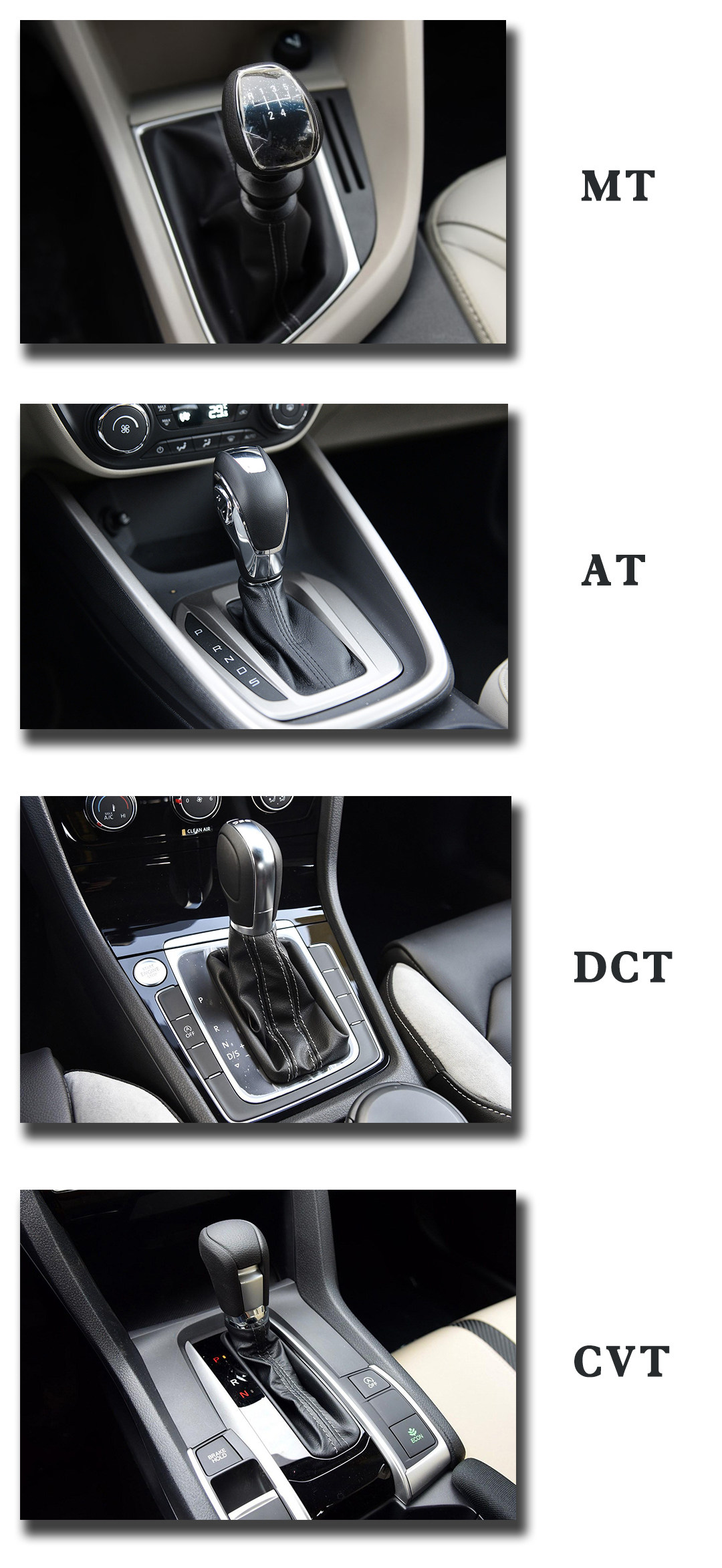 我们平时接触到的变速箱主要有这几种:手动变速箱(MT)、普通自动变速箱(AT)、双离合变速箱(DCT)、无级变速箱(CVT)。