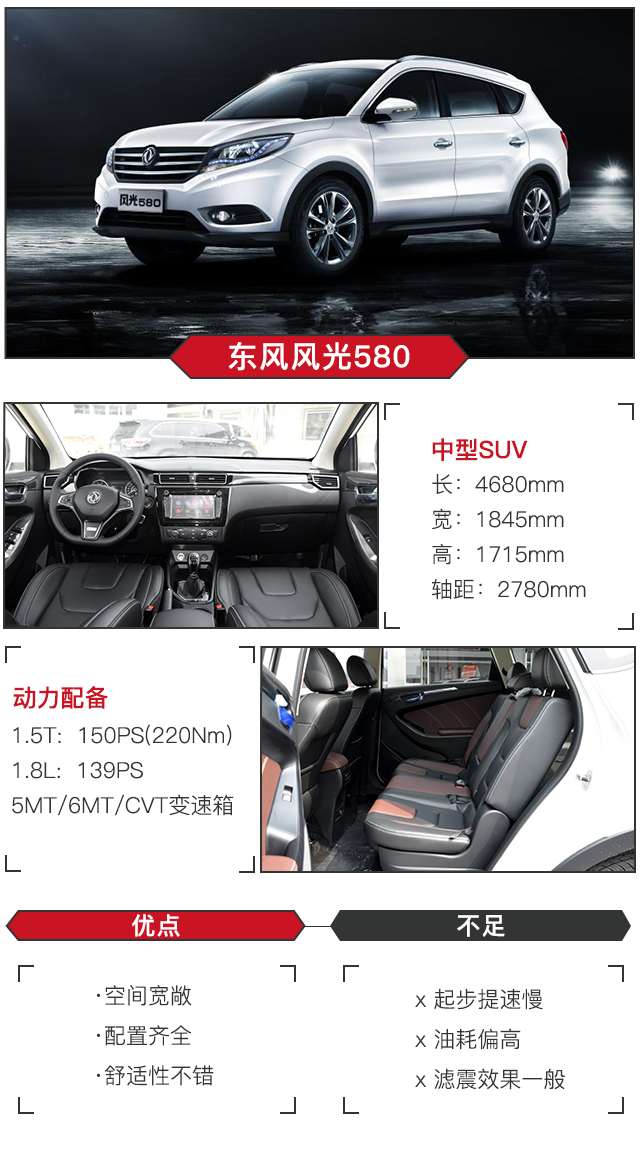 小结:风光580的空间可圈可点,动力组成多样但表现还有待提高,配置虽不是最丰富但也不逊色,综合而言是不失为一个不错的选择。