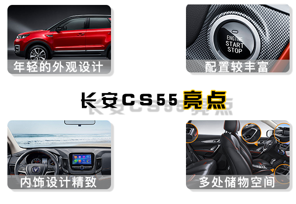 内饰设计就更是受年轻人喜爱,中控台使用全新的环抱式设计,黑与红的运动座舱配色产生碰撞。整个座舱让人情不自禁的跃动起来。再加上,相较于主要竞争对手传祺GS4、荣威RX5等同级自主品牌车型,长安CS55的价格看似更实在。正在考虑中国品牌SUV车型的年轻消费者又多了一个选择了~