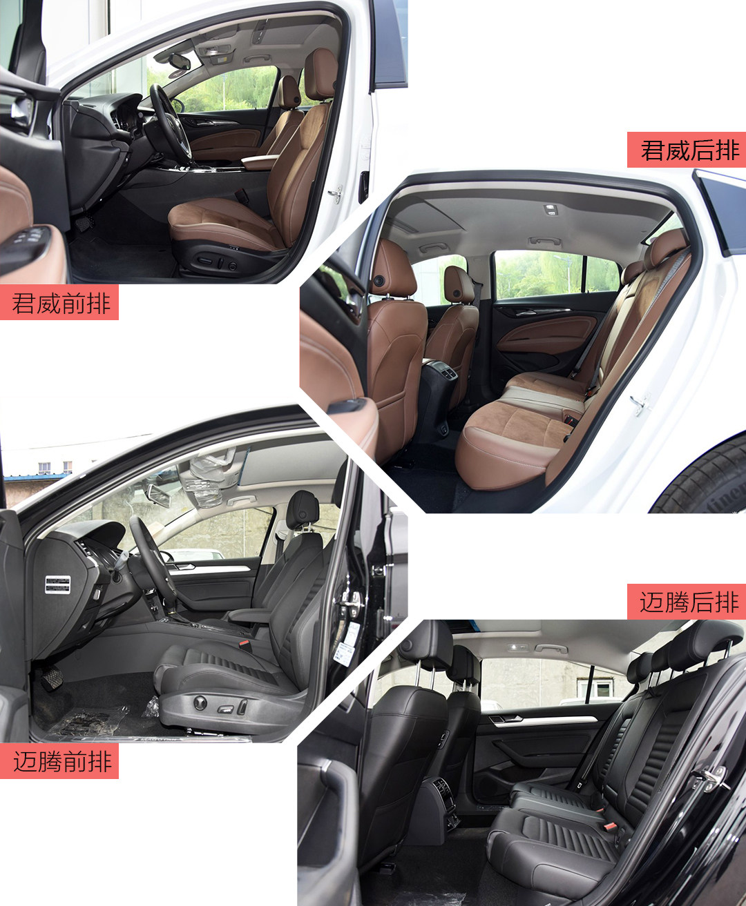 虽然新君威换代之后,整体的车身尺寸与轴距都有明显的提高,但相比于迈腾还是略逊很多的。例如新君威由于采用了溜背的造型设计,虽然车身看上去显得更修长与运动,但全景天窗则没有地方放置了,而且溜背的造型也会导致后排头部空间会局促一些。相比之下,迈腾则显得比较保守一些,但宽敞的后排的空间对于一些注重空间表现的消费者确实吸引力更高一些。