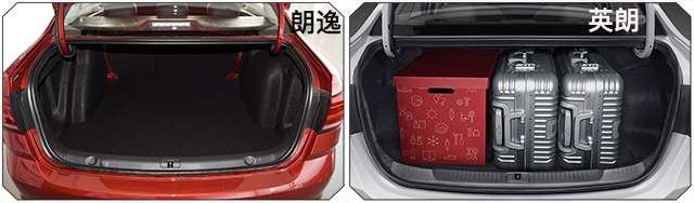 再说说两车的后备箱:朗逸官方公布的容积为478L,英朗虽未提供具体的容积,但除了宽度大于朗逸之外,其纵深与高度都不如朗逸。
