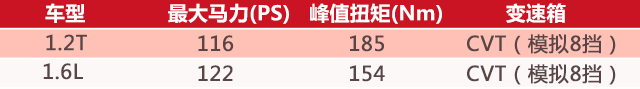 百公里加速是衡量车辆动力性的重要指标,因此在对比1.2T和1.6L车型的动力水平时,我们主要考量它们的百公里加速能力。在正式对比之前,我们先来看一下两款车的动力参数。