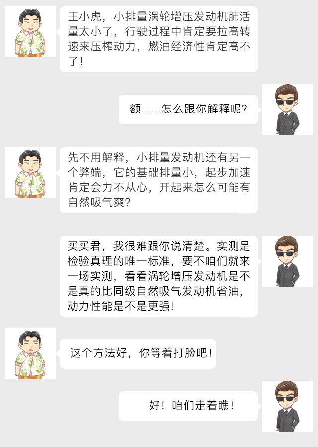 总结:从两个项目的测试数据来看,小排量涡轮增压发动机的表现确实要比同级的自然吸气发动机出彩,无论是燃油经济性还是动力爆发性,小排量涡轮增压发动机都具优势,这也就是为什么连保守的日系品牌也竞相研制小排量涡轮增压发动机的原因。看完这个实测结果,买买君不自觉地打脸了。当然,如果天气条件好一些的话,小排量涡轮增压发动机的领先优势会更显著,买买君估计就不是打脸这么简单了!