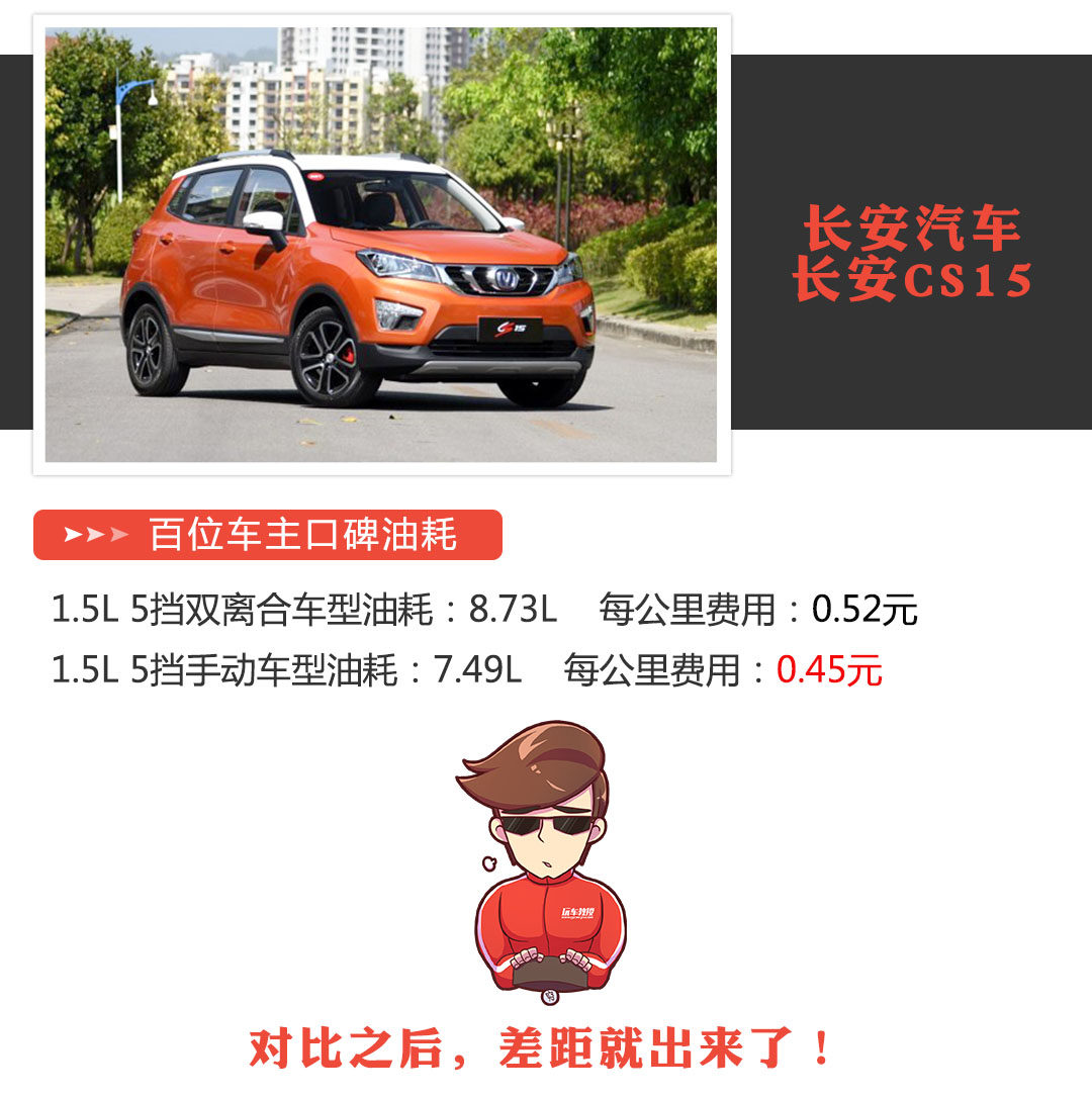 虽然说长安CS15的油耗相对于手动挡车型来说,稍微高出一点点,但是对于不熟悉手动挡的消费者而言,在这个价位上能够配备自动挡的车型更显出诚意,增加了竞争的优势。