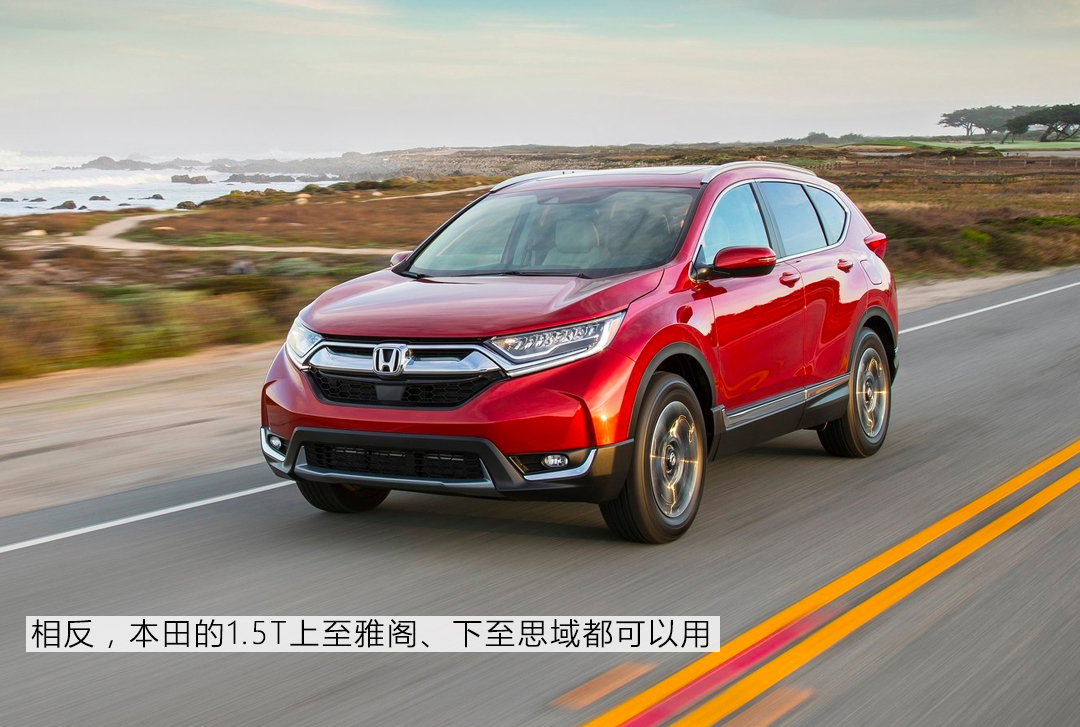 反观本田的1.5T,向下给思域用,动力足够澎湃,向上给CR-V、雅阁用,稍微调整结构之后动力又很充足。这样的发动机布局,让本田从紧凑型车到中型车都能很快地用上涡轮发动机,涡轮化的进程就更快了。