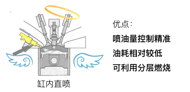 他的嘴(喷油嘴)简单粗暴插在发动机气缸里。善于射击的它,喷射出的燃油有很强的指向性,有利于分层燃烧,所以相对哥哥(歧管喷射)来说,相对动力强且省油。