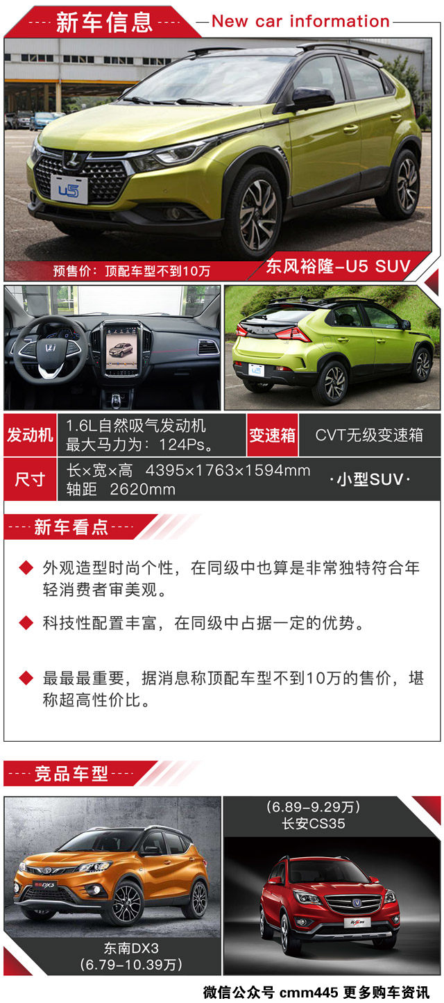 纳智捷U5 SUV最大亮点就在于外观造型非常个性独特,很抢眼,有一种过目不忘的感觉,其次科技性配置非常丰富,相信很多年轻消费者都会爱上这一款车。这款纳智捷全新小型SUV将会在8月25日成都车展开启预售,10月16日正式上市,值得一说是,顶配车型售价将在10万以下,相当接地气,相信这款全新SUV能为纳智捷重造辉煌!