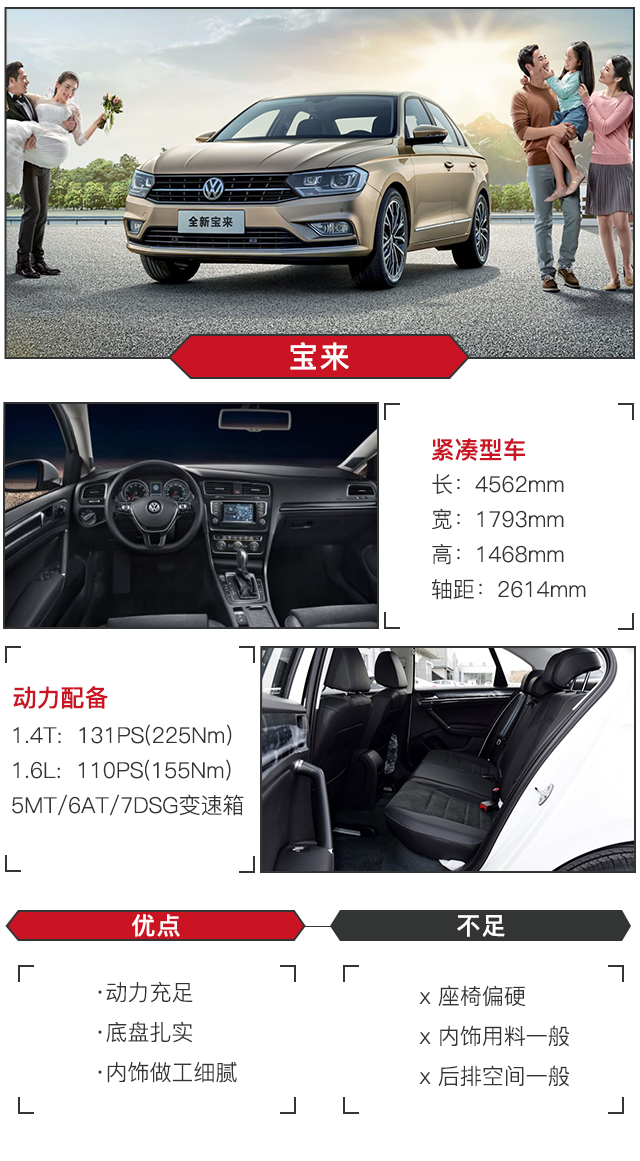 宝来搭载1.4T、1.6L两款发动机,采用5挡手动、6挡手自一体、7挡双离合变速箱,对于阿新所买的230TSI DSG舒适型一这款,破百时间为8.95秒,动力输出平顺,换挡时并未出现顿挫感,踩下油门,推背感较为强烈。平均油耗为6.7L/100km,在同级中表现出色。