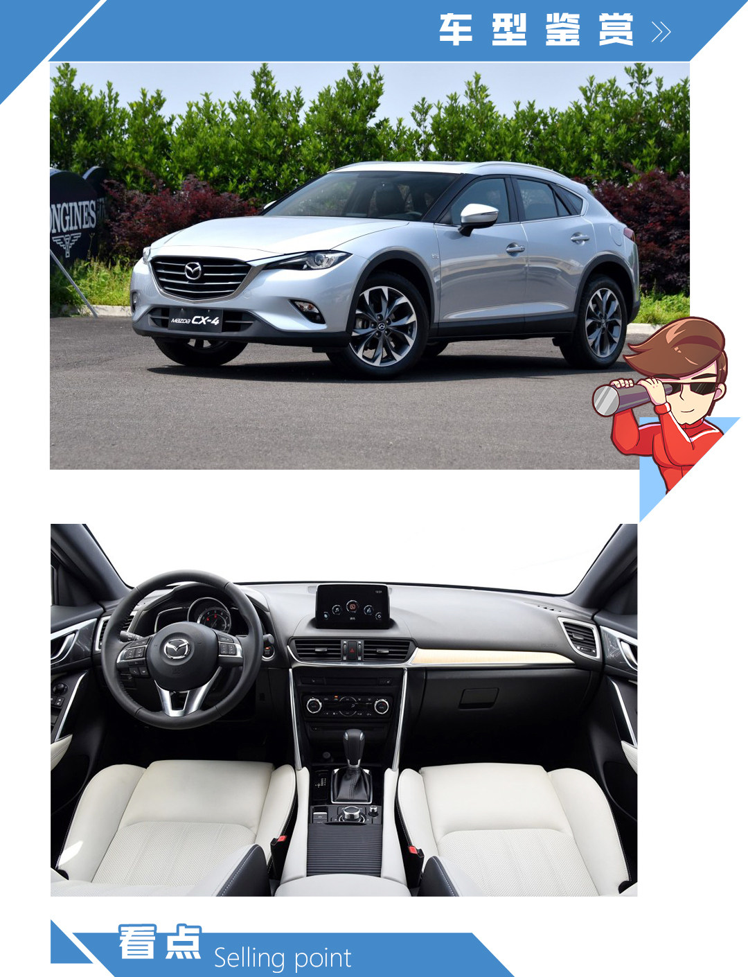 1、魂动的外观设计以及轿跑式的车身造型赋予了CX-4一个辨识度很高的外表!