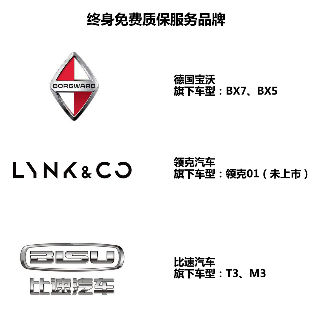 为了让消费者买得放心、用得安心,不少厂家也为自家的新款车型提供了一个超长的质保周期,从常规的3年10万公里延长至8年16万公里甚至某些厂商直接推出了终身免费质保,其实这主要的目的都是想得到消费者的信任!(尽管终身免费质保受限的条件很多,但有胜过没有!)