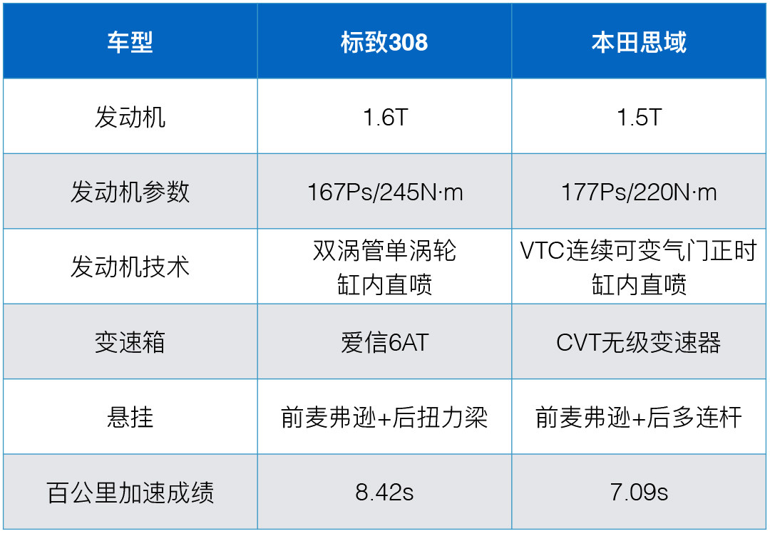 其实一个百公里加速成绩最多只能说明思域在直线加速的成绩比标致308号快,但并不能代表思域在操控方面就同样能胜过标致308。因为动力与操控这是两个不一样的概念,操控除了涉及到动力,还与转向性,悬挂反应,车身刚性有关。