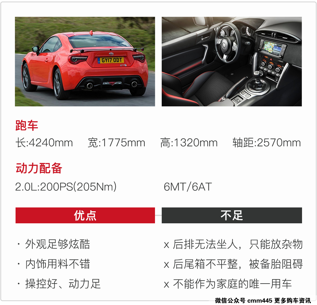 咳咳...丰田锐志怎么说还是一款4门5座的三厢车,如果不想多载人的话可以买这款,因为虎哥估计没谁会愿意待在它的后排,而且还有“86情怀”为你加分。