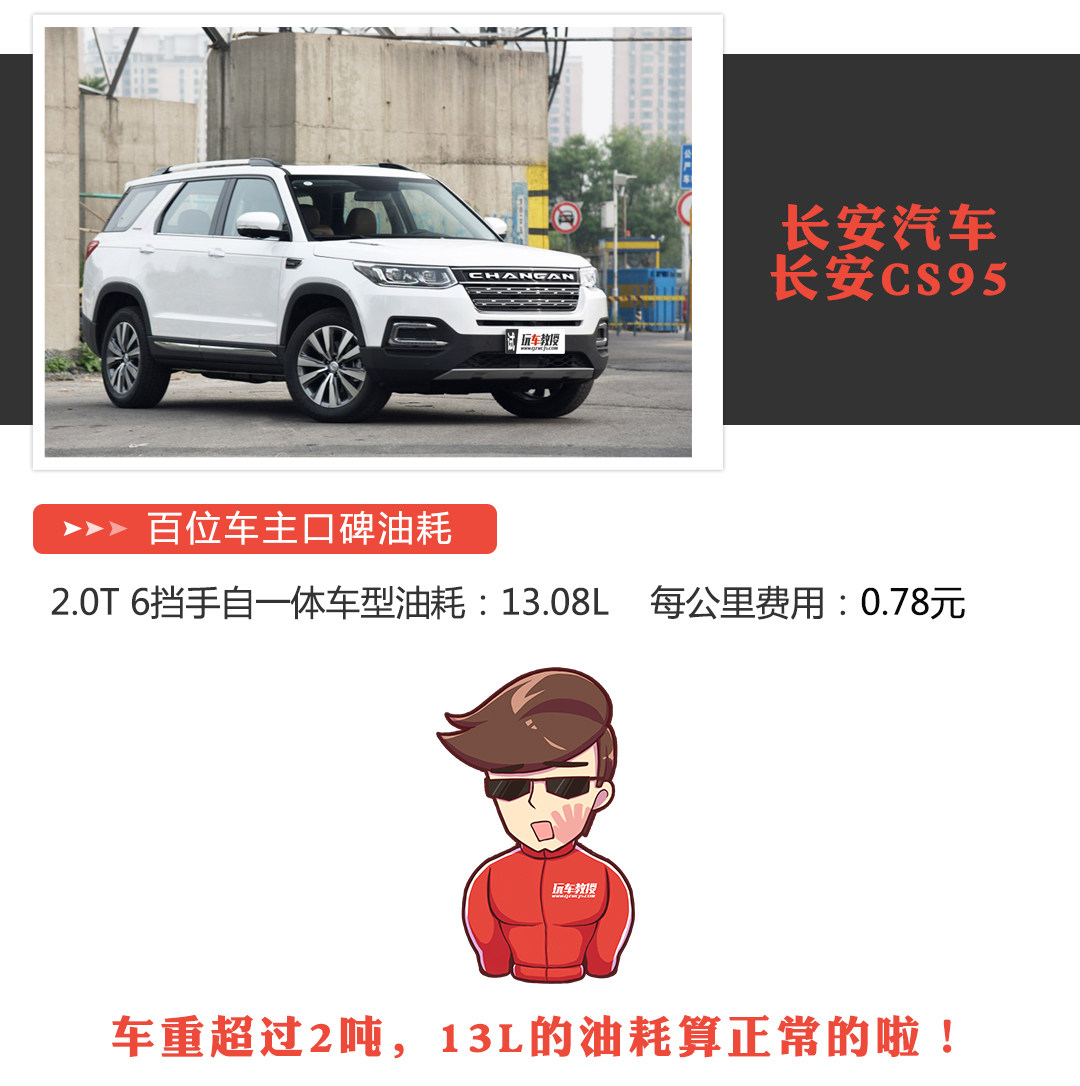 由于车重、风阻等原因,CS95的油耗很难低下来。2.0T+6挡手自一体变速箱的动力组合,对于车重超过2吨的长安CS95来说是足够用的。同时,在高速行驶时,长安CS95的隔音效果控制的比较好。