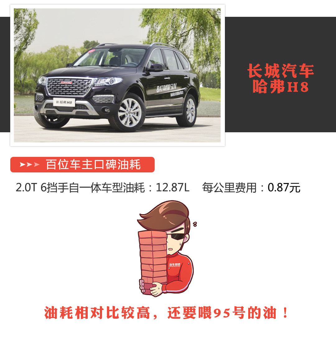 相比较之下,关注度比较高、销量也非常不错的广汽传祺GS8在油耗表现也是非常出色的;虽然哈弗H8的油耗相对于长安CS95来说稍微低一些,但是哈弗H8需要加95号汽油,所以按照油价进行计算,日后的养车成本会增加;至于长安CS95,动力性能是最出色的;而WEY与哈弗H8有些相似,油耗略高,但内饰质感非常棒适合对品质有高要求的用户。