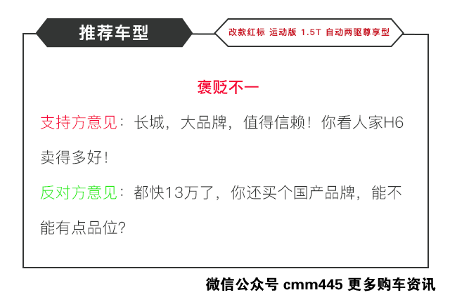 虎哥简评:哈弗H6,产品力不用说,不然销量也不可能这么高。经过几次更新换代,H6的颜值及配置都有不小的提升,市场竞争力更强了。如果你想买一部空间大、配置高、质量靠谱的SUV,不妨考虑考虑它!