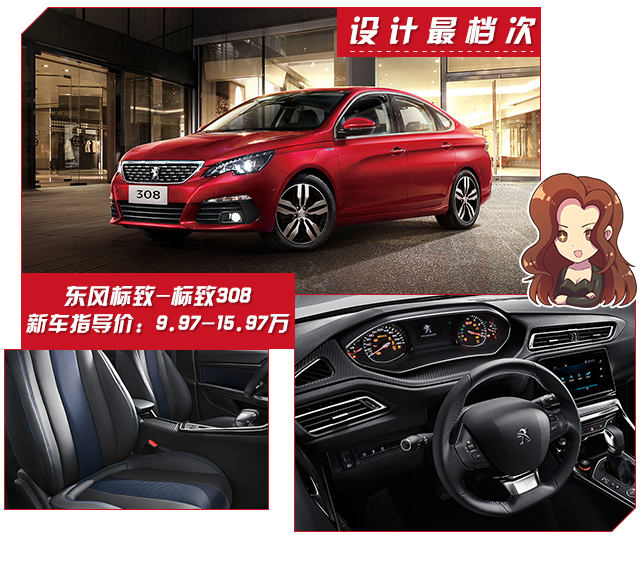 其实说308是十万级的车型,有点把它“降级”了,不过现在的标致车型降价幅度一直很可观,所以中低配车型十万左右能拿下来也不是什么难事了~法系车在外观设计层面上一直很独特,标致308作为中国特供的三厢轿车,外观看起来非常具有时尚感与运动氛围,这也是一姐在十万元左右的车型里找到的比较帅的一款之一噢~
