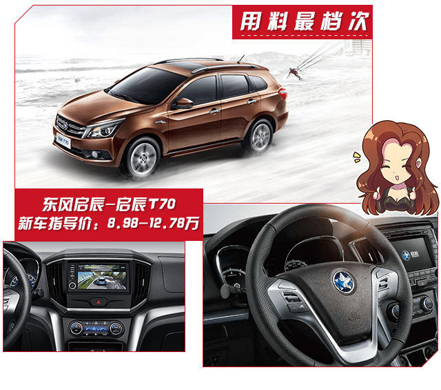 源自日产奇骏的启辰T70的技术平台成熟,而车内用料档次也不含糊,软质材料的使用一点都不含糊,而且包裹做工精细程度很不错。在实际视觉感和使用中也是有着一定档次感的体现。作为一款家用车来说,启辰T70是一款舒适性出色、内饰用料也比较高档的车型噢。
