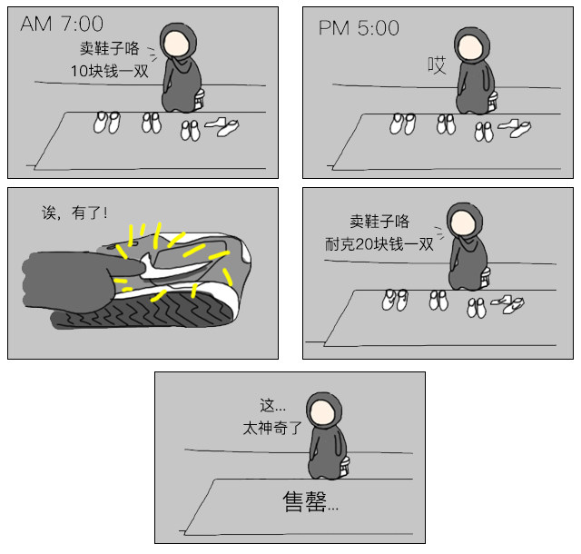或者用一幅漫画形容下品牌溢价吧↓↓↓