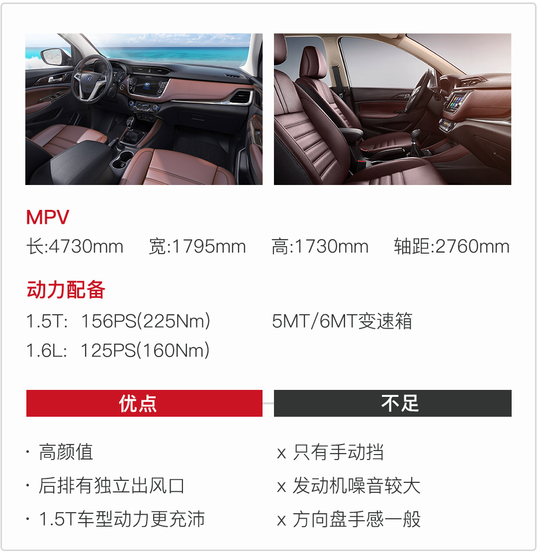 如果真的追求大空间,那选一台MPV就再适合不过了。一般7座SUV的第三排只能短时间乘坐凑合着使用,要第三排真长时间坐人,还是MPV更有优势。凌轩是虎哥比较喜欢的一台平价MPV。没有笨重感的外观设计值得肯定。全新的1.5T车型不足9万就能拥有in Call智能车载互联系统、多功能方向盘、8寸触摸屏、ESP系统、倒车影像、倒车雷达等配置,比较丰富。