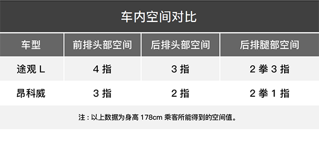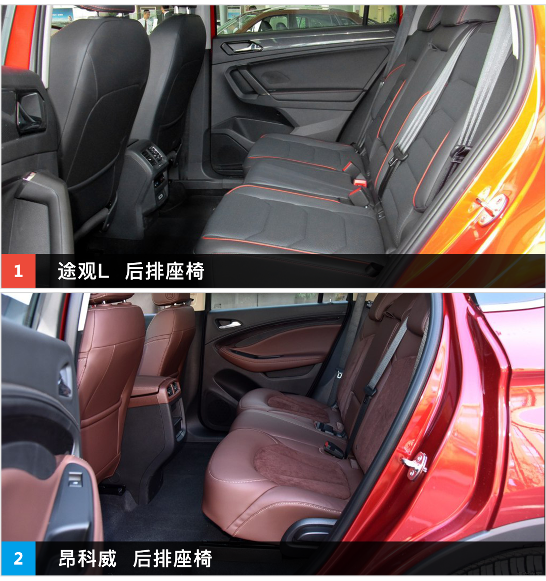 昂科威的头部空间相对而言有些局促,且后排腿部空间不如途观L宽裕,毕竟途观L就是奔着更大尺寸、更大空间来的,在这一回合上我想昂科威应该是输得心服口服。