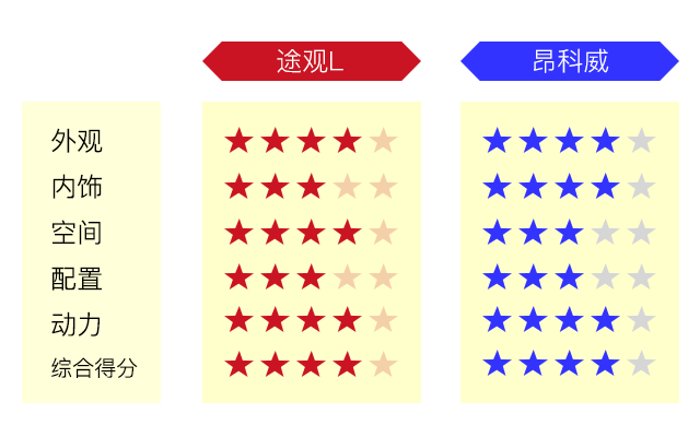 通过以上的对比分析,小雅最终给两车的打分都是四颗小星星:一个外观经典大气,一个造型中庸耐看;一个内饰做工精致,一个内饰主打舒适豪华;论空间,途观L更占优势,论配置性价比,昂科威丝毫不示弱;两车动力强劲,既能满足你对驾驶快感的追求,也有日常家用代步的选择。那么作为消费者的你更喜欢哪一款呢?赶紧来留言区告诉小雅吧!