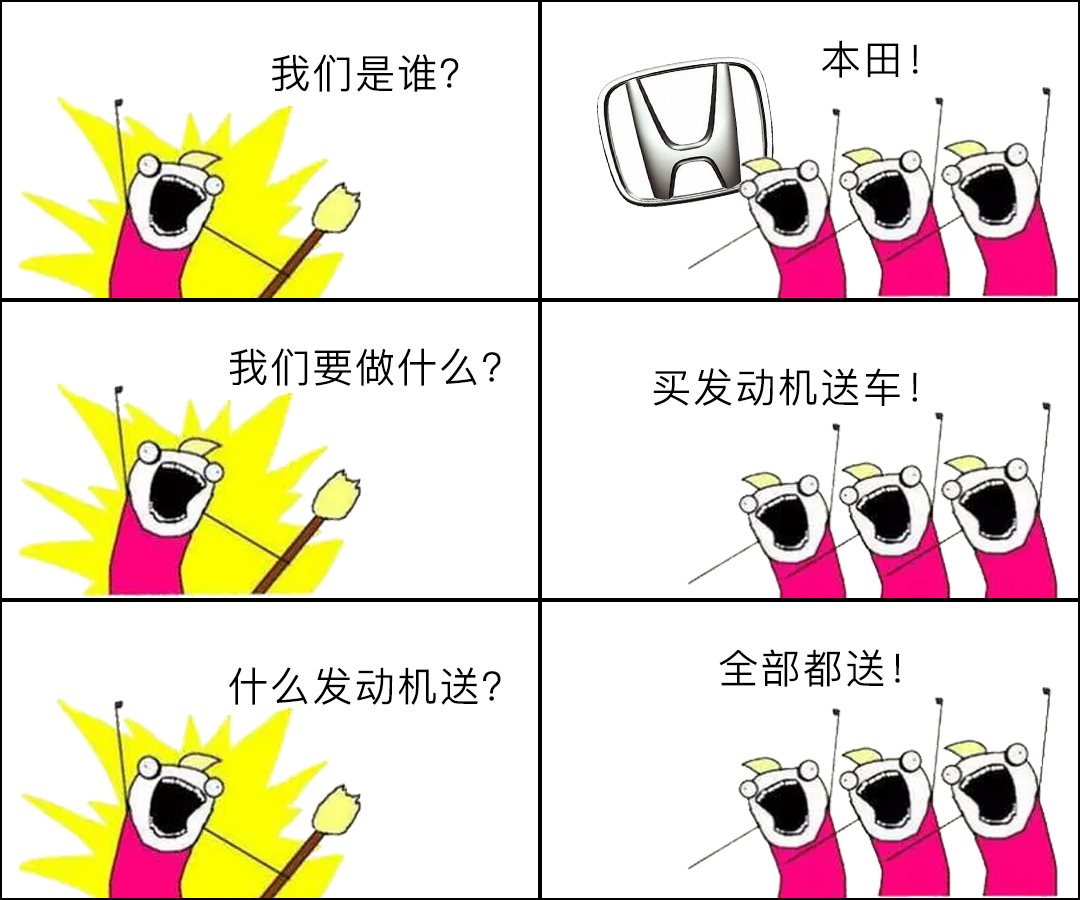 调侃本田是买发动机送车已经不是一天两天的事了。一方面本田的发动机实在是强。最强的发动机黑科技VTEC、i-VTEC、地球梦科技,就算大家不知道其中原理,也肯定听过它们的名字。例如被本田党早已捧为神车的思域,1.5T的发动机有177匹的马力,跑进7秒的百公里加速成绩甚至可以让众多的前驱小钢炮都感到颤栗。另一方面,买一台本田车,除了秀发动机,似乎也没什么可秀的了,较硬的悬挂质感和噪音较大的驾驶环境,还是暴露出不少“本田家”的问题。