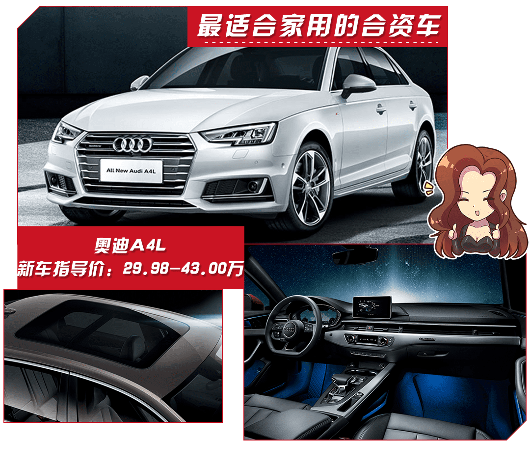 不是宝马、也不是奔驰。一姐要推荐的是奥迪A4L。它与宝马3系和奔驰C级相比,操控性不是最好的,内饰豪华感的营造同样不是拔尖的,但是它均衡的表现给人很高的接受度。
