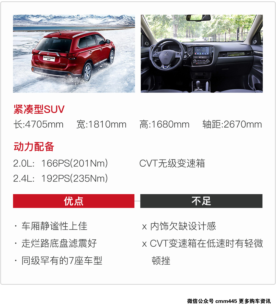 国产之后的欧蓝德在品质、配置上几乎和进口版保持一致,最重要的是15.98万的入门售价更低了,欧蓝德可以说是满怀诚意而来。欧蓝德在各方面的表现中规中矩,没有什么可挑剔的地方,对于没有7座和越野需求的消费者们,买入门版最实惠。如7座是刚需,那么2.4L七座版本一样值得推荐,且有着较高的优惠幅度。