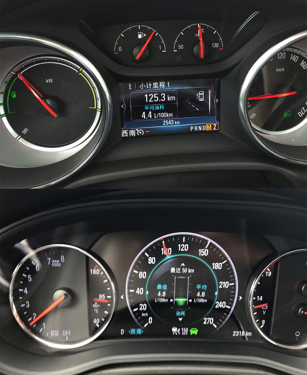 此外30H的“刹车”也很有个性,其M挡是用于调整动能回收的强度,挂入M1挡松开油门时会产生明显的制动力。刚上手可能会有点不适应这种“不自然”的制动,熟悉后你会发现这完全可以替代一部分刹车的功能。其实这种“玩法”早在雪佛兰的BOLT上就有了,只是BOLT通过方向盘背面的按键来调整强度,在君威上你只要预判前方路况,提前挂入M1松开油门让动能回收缓缓“拉停”车子。通过中控屏幕看着电池充满会有种莫名的满足感,原来每一次刹车都在费油,现在感觉每一次刹车都在节油,于是隔壁的小伙伴一脸问号的看着我明明开着一辆混动车型还不停地推拉挡杆...