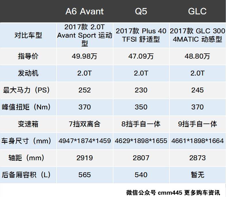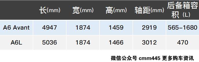可以看出,即便是与Q5、GLC等SUV车型相比,A6 Avant的闪光点还是很突出,不说别的,其565L的常规后备厢就要遥遥领先于同价位主流的SUV车型。另外,其2919mm的车身轴距比起SUV来说也不落下风,实用性遥遥领先。