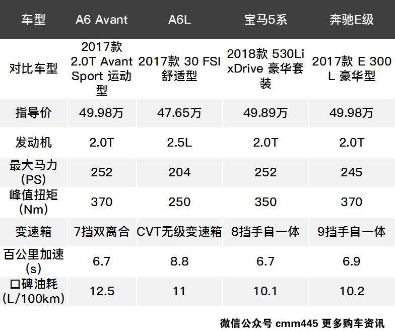 在40-50万这个售价区间,A6 Avant难免会与宝马5系、奥迪A6L、奔驰E级等行政级轿车产生正面冲突,跟它们比起来,A6 Avant的优势在哪呢?