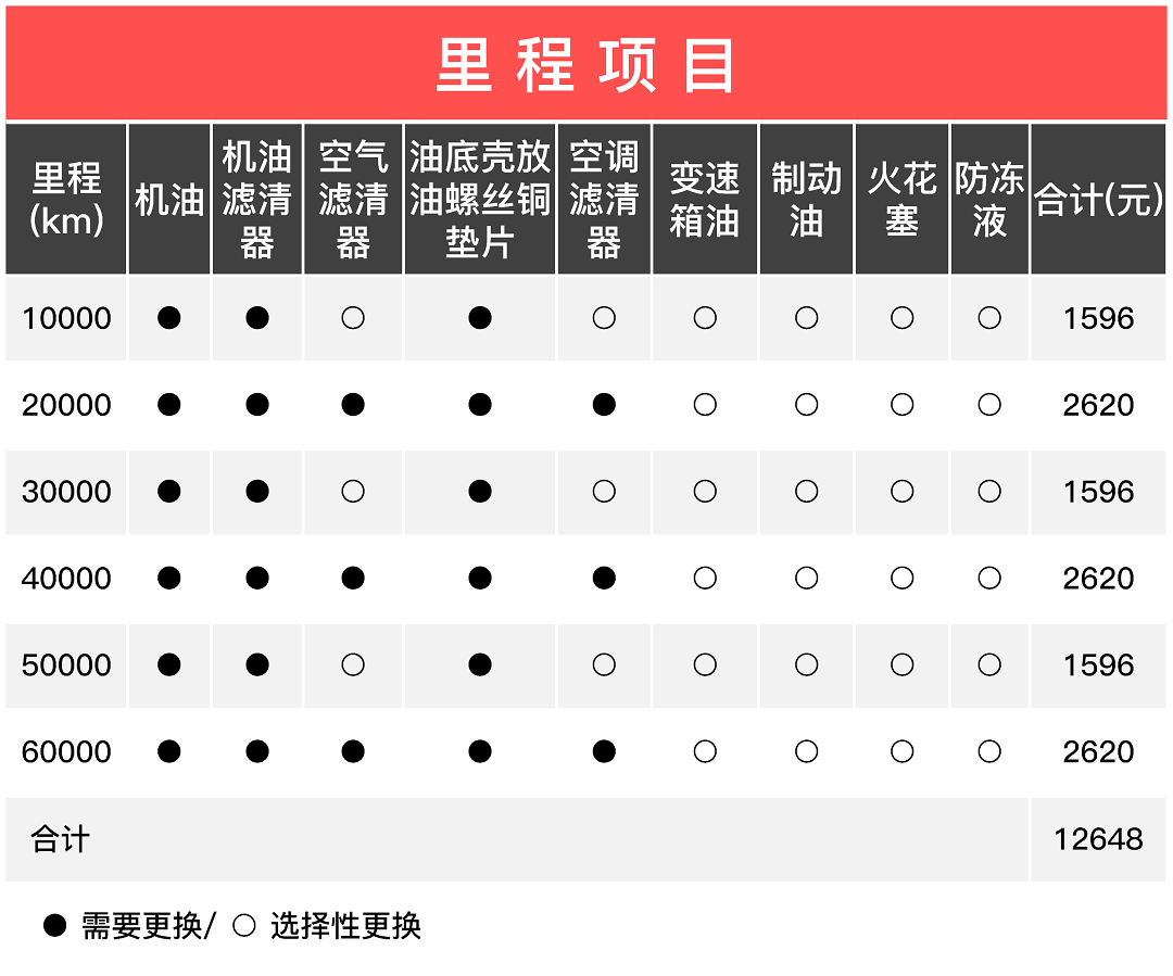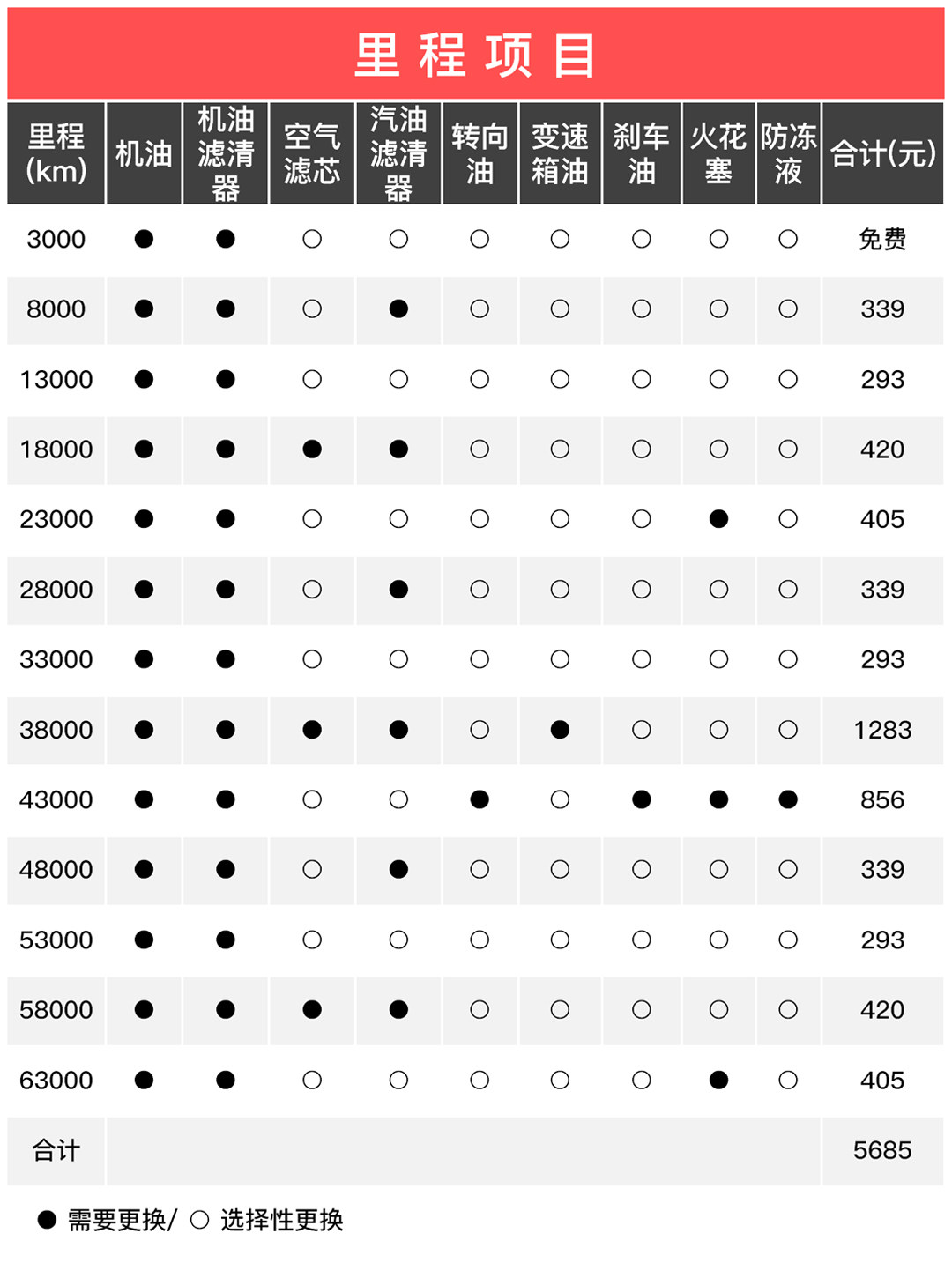 保养间隔为5千公里,虽然保养间隔较短,但是花费都不高,小保养更换机油机滤一次 293元,6万公里保养总花5千多。