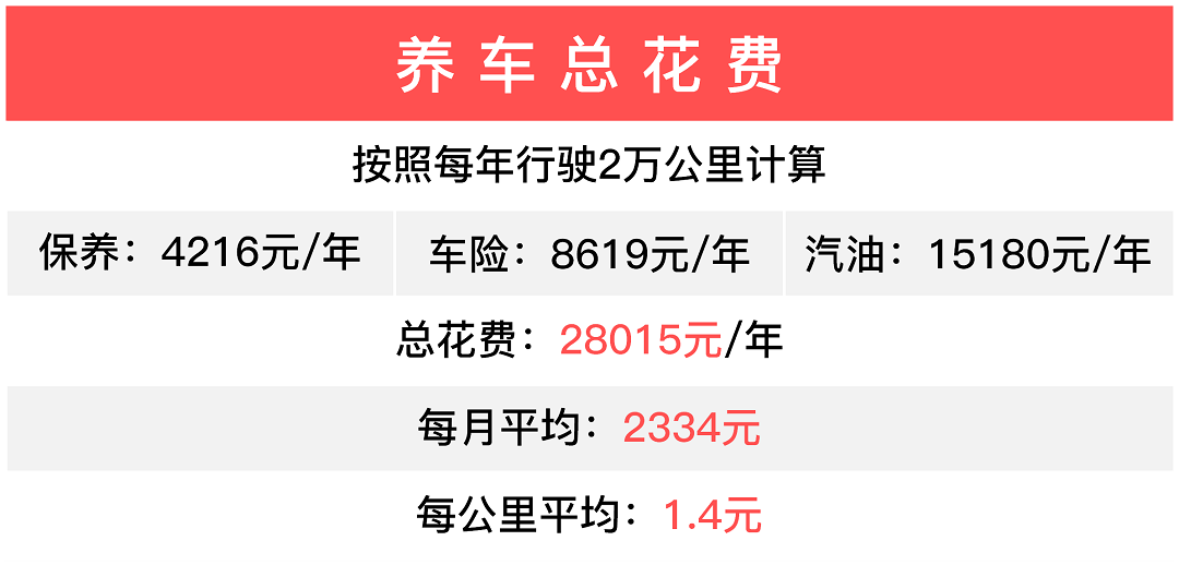 【注:本文数据仅供参考,油价取广东地区油价计算;表格中的商业保险包括第三者责任险(50万元)、车辆损失险、不计免赔特约险,实际费用以当地缴费为准;数据来源汽车之家】