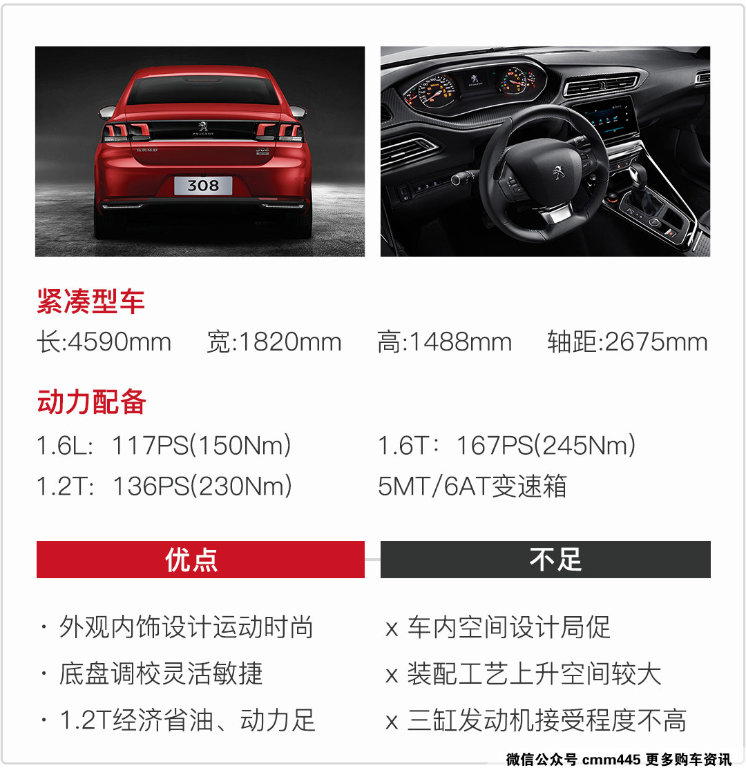 以上三款可以说是在1.2T这个排量层级颇有造诣的紧凑型轿车,空间表现速腾和雷凌都相对宽敞,308尽管稍显狭窄但也不到完全不能接受的地步,但是如果问确切的推荐车型,虎哥或许会牺牲一定的车内空间而选择动力更强的标致308。
