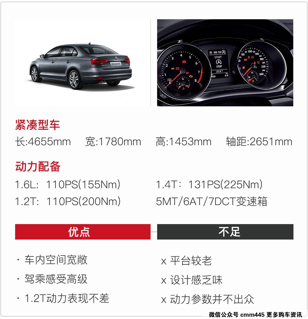 虽然速腾车型技术平台已经存在挺久,按理说也接近换代,但得益于大众模块化平台的生产方式,速腾身上的配件采用的都是大众的新产品,消费者也不需要太多后市场层面的担心。1.2T的发动机尽管动力不算猛,但作为人生起步的家用车选择已经绰绰有余。