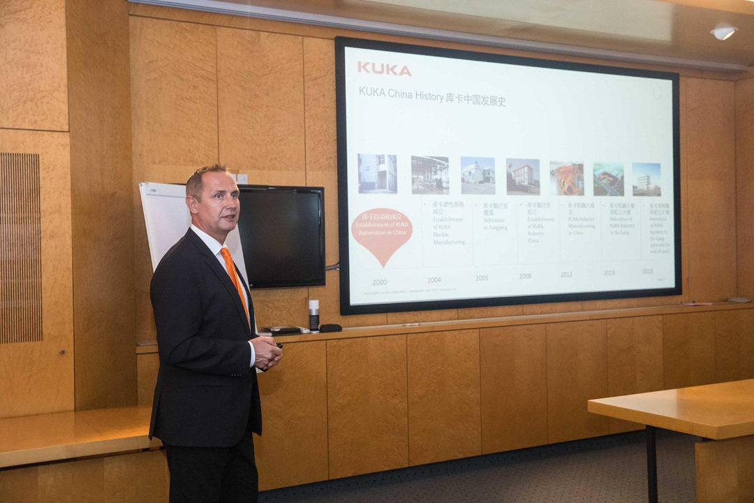KUKA的CEO Frank klingemann给我们介绍了一些公司情况,目前KUKA在自动化技术、机器人技术、物流技术及互联网技术等非常的领先。