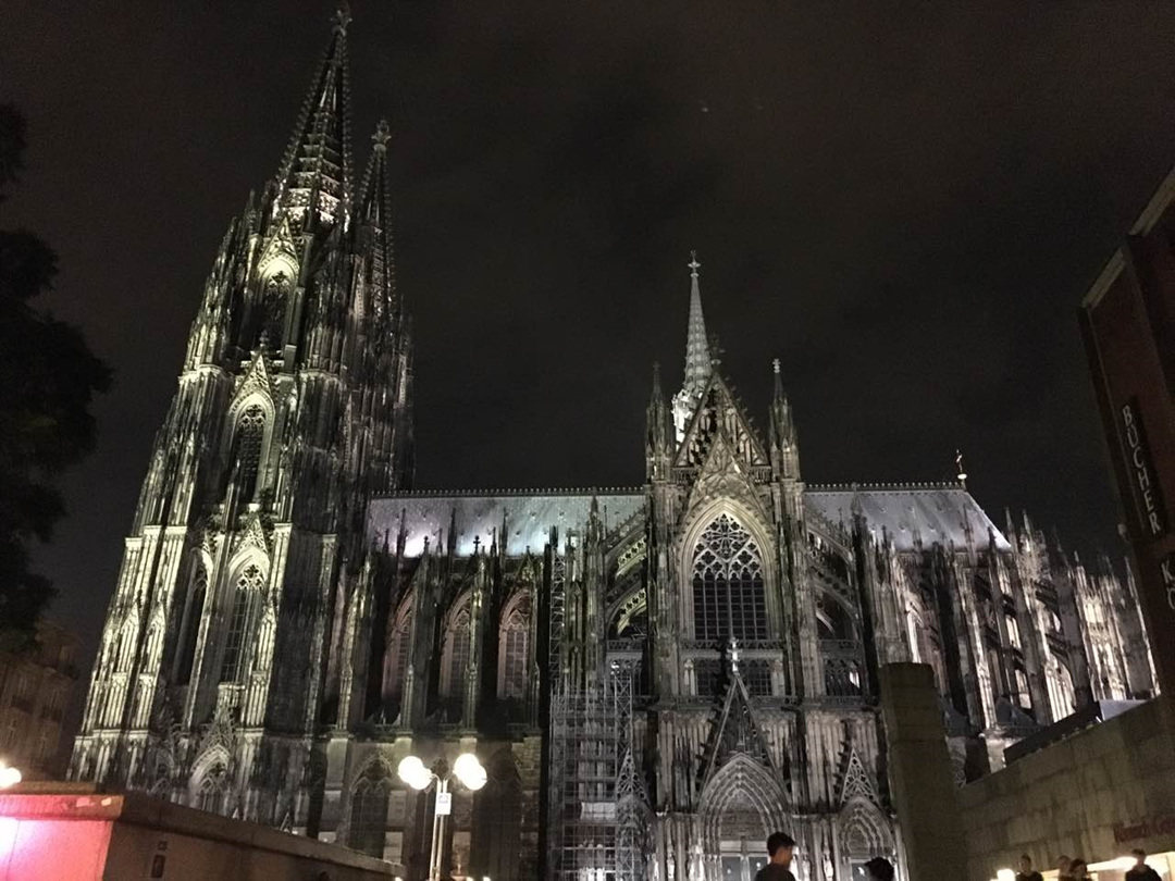 晚上我们到达科隆市,匆匆一眼看了一下科隆大教堂,问了度娘,它始建于1248年,工程时断时续,至1880年才由德皇威廉一世宣告完工,耗时超过600年,至今仍修缮工程不断,是科隆市的标志性建筑物。