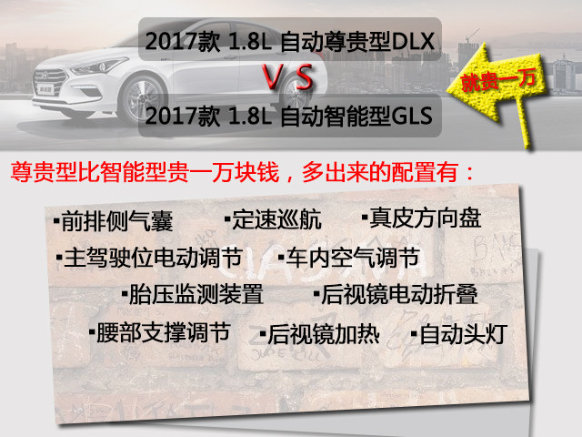 这款车除了动力和变速箱跟1.8L 自动尊贵型不同外,配置方面几乎一样的了,价格的话比后者多出一万块钱。除非真的对动力和配置要求很高,不然教授还是不会推荐买这款的。