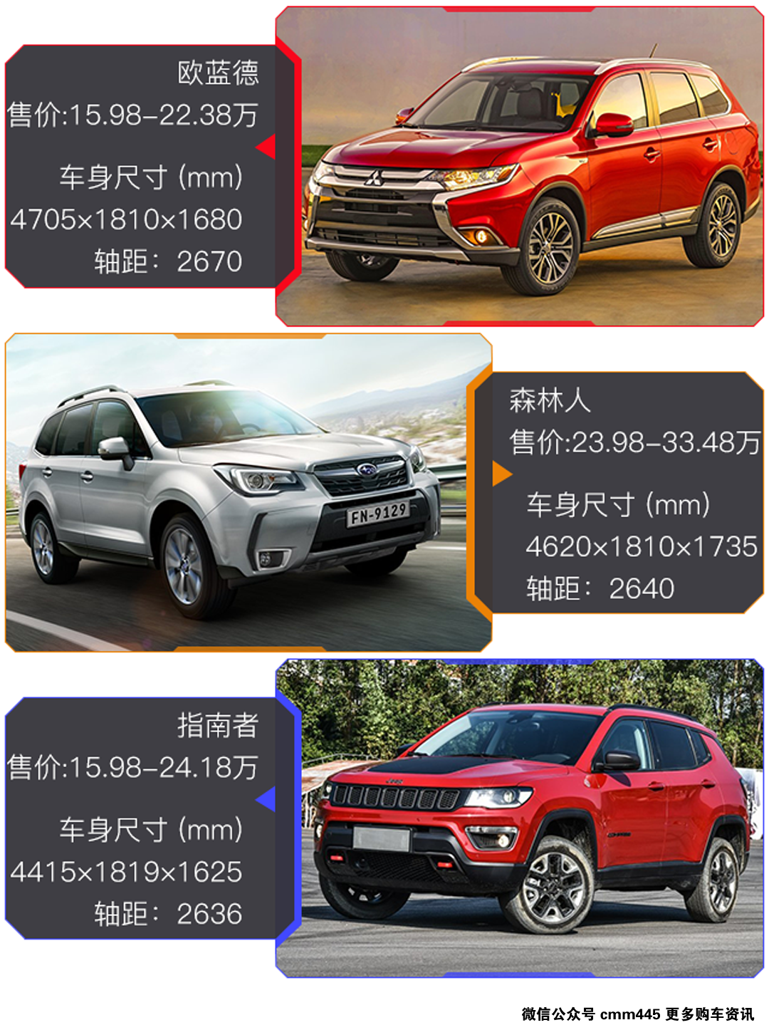 在城市用合资紧凑型SUV中,具备一定越野能力的车型有欧蓝德、森林人、指南者和奇骏,今天编者就着重讲一下前三款。本次对比的车型是2.4L欧蓝德、2.5L森林人和2.4L指南者。