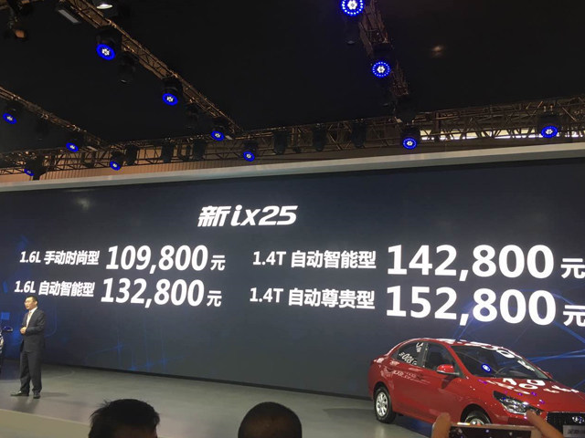在2017成都车展上,北京现代新款ix25正式上市,价格区间为10.98-15.28万元。