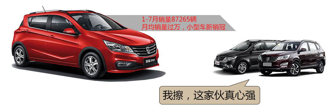 果不其然,310一上市便以超低首付、小型车尺寸微型车价格等优势瞬间爆红,今年1-7月宝骏310已经卖了8万多台,月销量甚至还冲上过轿车销量榜前十,要知道前十里自主车型都几乎见不到,所以说,对于品牌不够高大上的厂家来说,性价比、入门级就是最好的切入点。