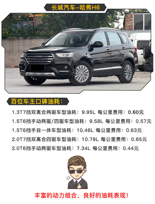 总的来说,三款国产SUV在市场上都有着非常不错的表现,同时三款车型的特点都不相同,这也让预算只有10万左右的消费者更多选择国产SUV,但是毕竟在国内买车成为消费者买方以外另外一件低频率的大事,所以更需要注意油耗的表现。所以,在这三款SUV车型中,多种动力组合的哈弗H6车型更具性价比,消费者可以根据价钱和需求进行调整。
