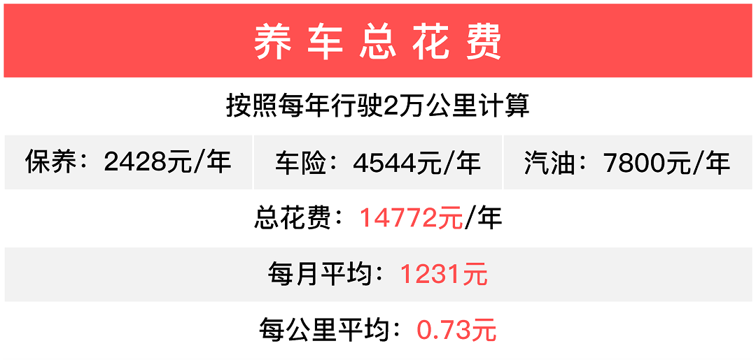 【注:本文数据仅供参考,油价取广东地区油价计算;表格中的商业保险包括第三者责任险(50万元)、车辆损失险、不计免赔特约险,实际费用以当地缴费为准;数据来源汽车之家】