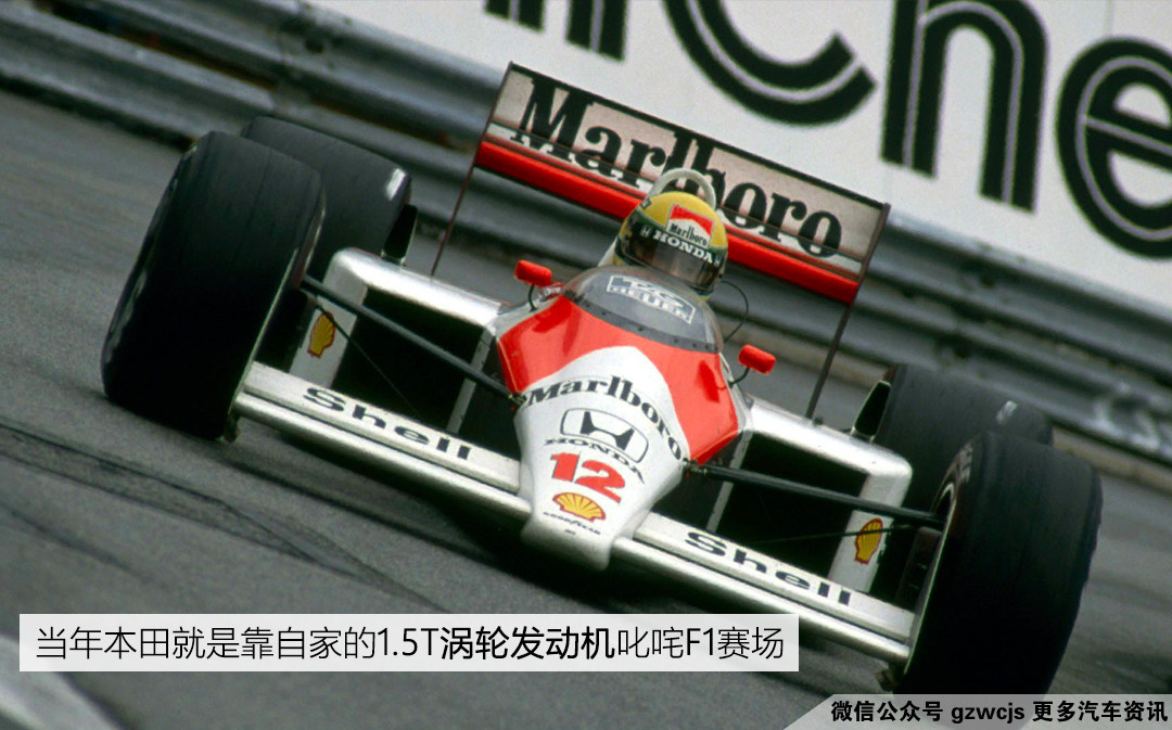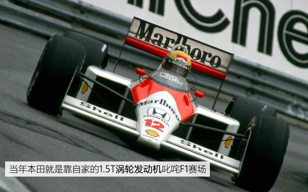 然而熟悉本田的粉丝应该知道,当年本田在F1赛场上扬名天下,靠的恰恰就是他们家的1.5T涡轮增压发动机。1964年首次参赛铩羽而归、旋即1965年在墨西哥站登顶、1968年发生意外后暂别赛场。复出之时已是80年代,到1988年达到巅峰,迈凯伦车队的两位车手塞纳河普罗斯特拿到了全年16个分站的15个冠军,而该车队使用的发动机正式本田的RA168E,以至于第二年F1全面封杀涡轮增压引擎......