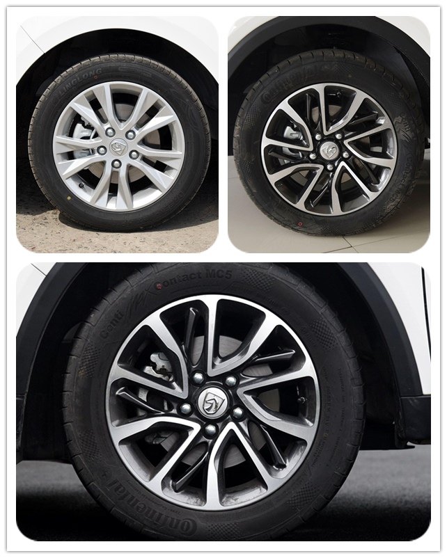 宝骏730提供了两种轮圈样式。1.5L配单色双五辐样式,1.5T及1.8L配双色多辐样式,全系配备马牌轮胎。