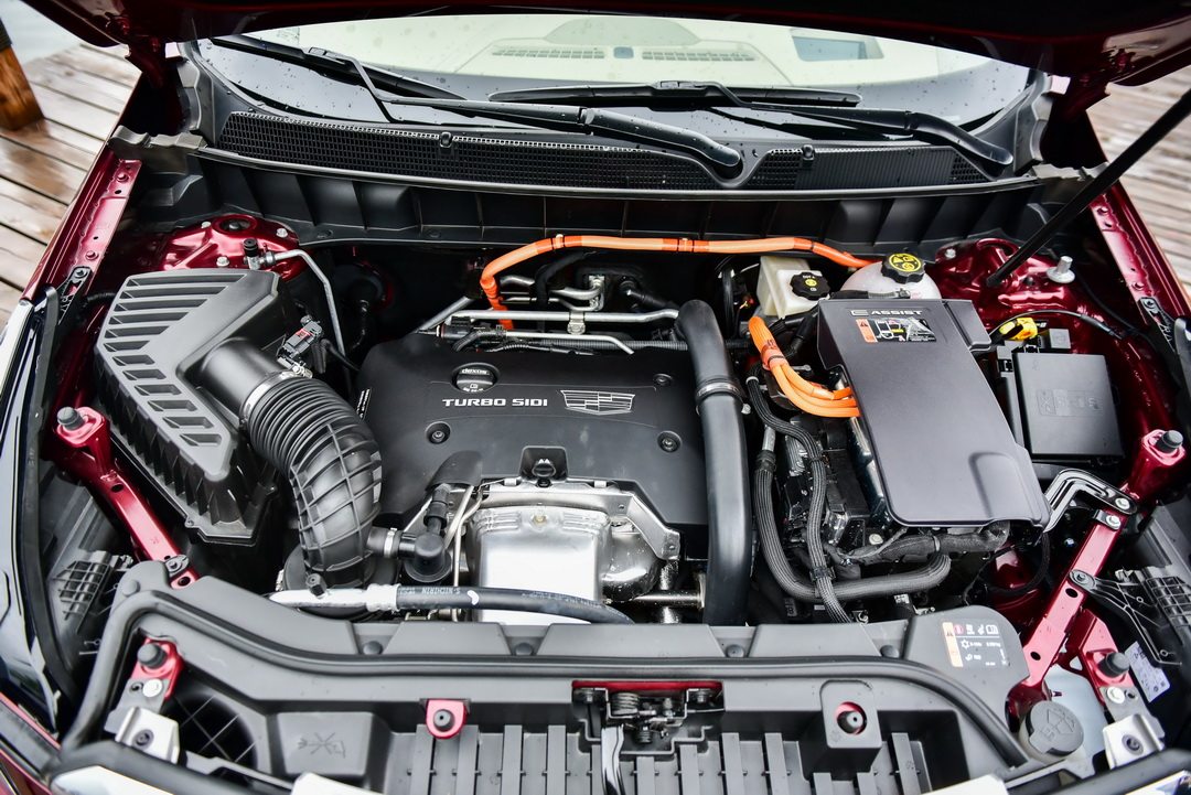 XT5采用一套全新的轻混合动力系统。区别于CT6 PHEV上的插电式混合动力系统,XT5上的轻混合动力系统并不需要充电就能正常工作。它由一颗能提供49牛米的最大扭矩的电机(功率为6.6千瓦)、储能的450Whr电池组和一组负责电能的转换器所组成。这组混合动力系统的功率并不大,平常不能完全独立驱动车辆行驶,主要是作为辅助2.0T直喷发动机工作。