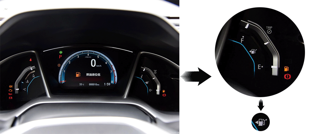 这种情况大多是借朋友的车才比较疑惑,可能大多人都会看看两边的后视镜,看看车身两侧油箱盖到底是哪边。其实油箱盖到底是左边还是右边,最直接的判断就是看仪表盘,看看油箱标志的箭头指向就可以了。