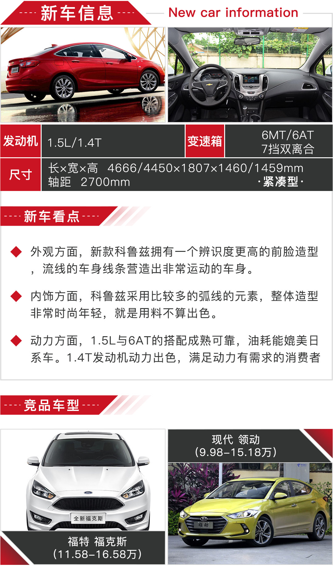 虽然目前汽车市场SUV车型最红火,但紧凑车依然是很多人买车的首选。相较于SUV而言,轿车拥有较低的重心与出色的操控感受。这方面,科鲁兹就表现得非常出色。这次新款上市,价格依然保持在10.99-16.99万元之间,除了尾部标识有所变化之外,改变不大。