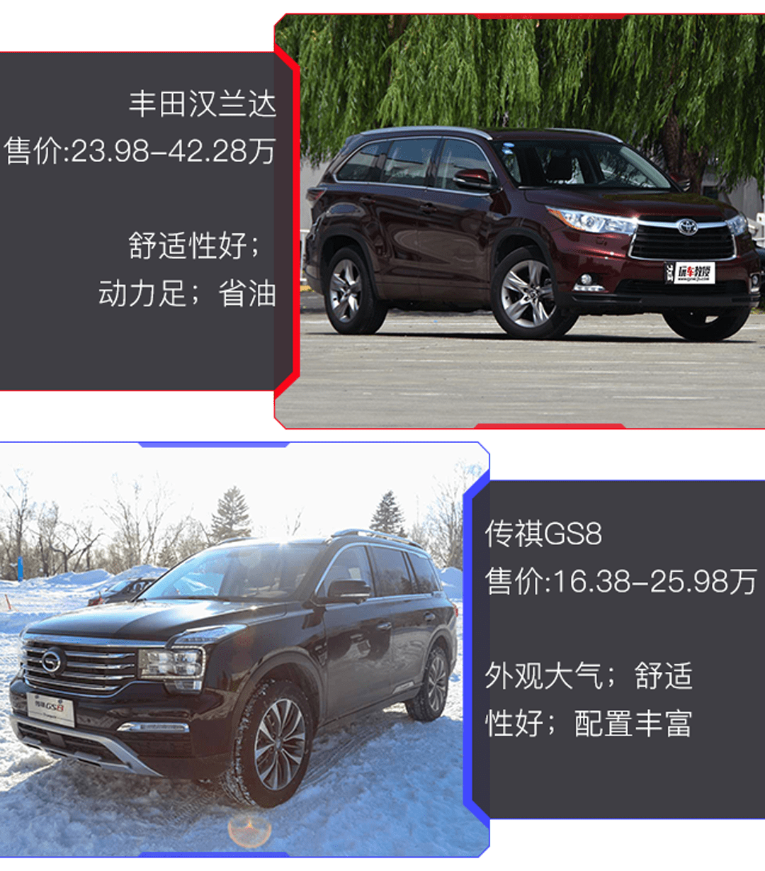 就是因为汉兰达实在是太“拽”了,所以现在不少中型SUV一上市都说要干它,可是有谁能干得动?唯一真能威胁到汉兰达的就是传祺GS8,外观迎合了消费者们的口味,配置丰富,乘坐舒适性不错,同样是一款7座中型SUV,价格更便宜之余还不用加价提车!你该不会跟自己的RMB过不去吧?