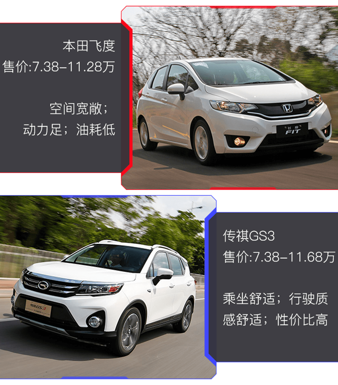 以相差不远的价格,为什么不考虑一下刚上市传祺GS3呢?外观采用了家族式设计,看起来大气,而且空间不输飞度,行驶质感舒适,隔音方面也会比飞度要好,配置方面也会比飞度丰富。更重要的是,通过性要比飞度强,啃马路牙子的时候会显得更轻松。